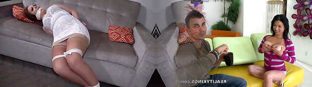 Dude gets bound up and has to watch his girlfriend hotwife him