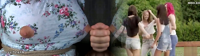 Pigtailed sandy-haired with huge melons is bound hand and foot