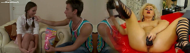 Horny grandpa and perverted daddy fuck an innocent teen