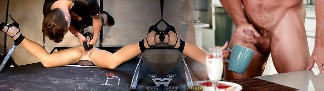 Splooging sluts Monika Fox & ger girlfriend stretched out in BDSM