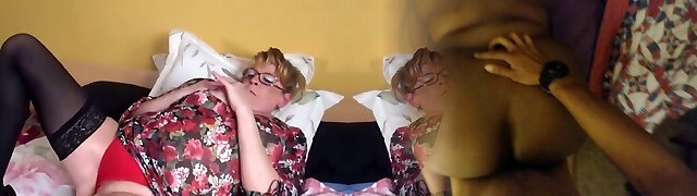 Lusty unexperienced blond haired granny in glasses masturbates her twat