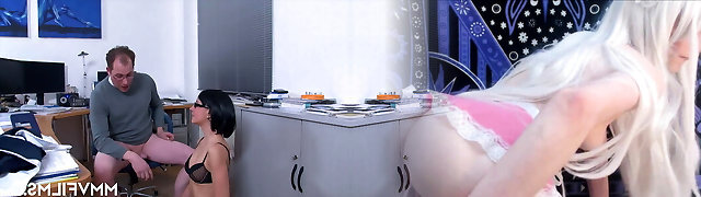 Nerdy blonde in glasses gets individual with her perverted step father