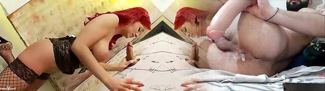 Domina tickles dick with her palms, I made him cum 2 times