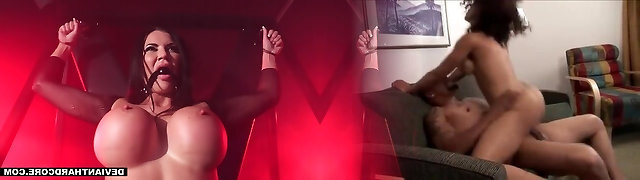 Curvaceous raven-haired domina with massive bra-stuffers has some fun with a sweetheart