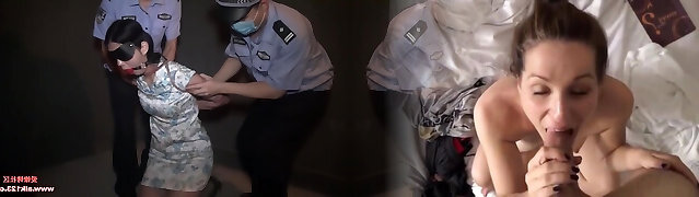 I tied up her arms to the sofa and fed with sticky cum after blowjob
