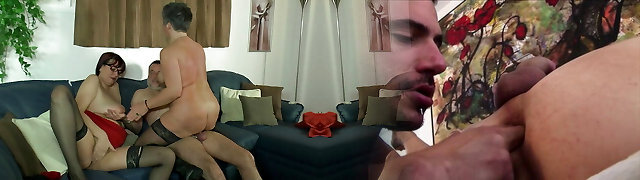 Two Fotzen und einen Schwanz! Deutsch bumsen auf dem sofa!