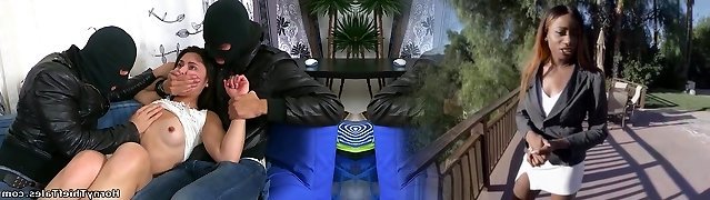 Robber in mask fucks roped up brunette honey with huge boobs Jasmine Jae
