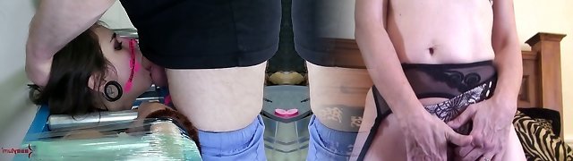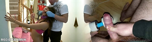 Tied up teenie pussy pounded hard by mask wearing stepbro