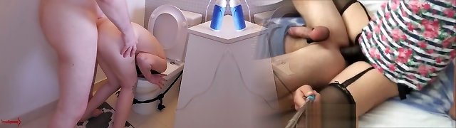 Weirdo in mask fucks anus of uber-cute girlfriend putting her head in toilet bowl