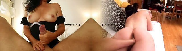 Kneeing Balls and handjob! I teasing his cock and balls