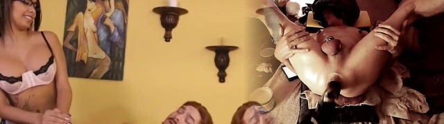 Anal fisting and pegging. Dominatrix Nika knuckles the gimp's ass and fucks him with a strap-on.