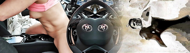 Public getting off of a brunette in a truck on the go.