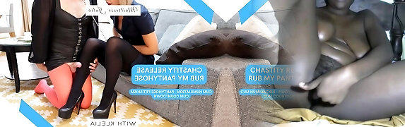 Damsel Domination Handjob and Legs Fuck in Pantyhose and High Heels