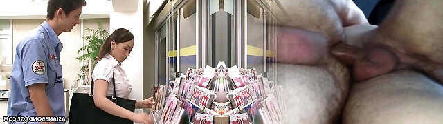 Caught in the shop office clerk Ayumi Wakana gets stroked rigid