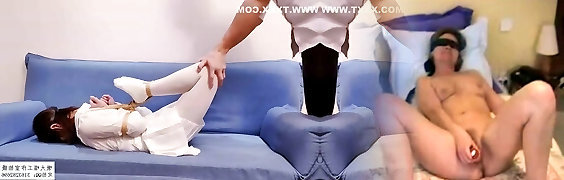 Bushy pussy of handcuffed Asian slut Yui Shimizu is taunted with sex toys