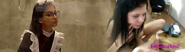 The breezy deep throats her buddy'_s dick. Point of view. A man fucks a slut in the mouth without panties.