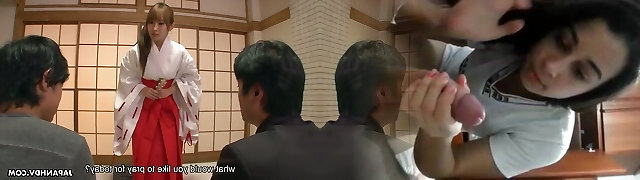 Adorably stuck Japanese geisha Yui Misaki works on two delicious knobs at once