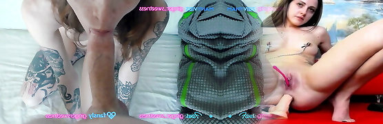 CREAMPIE on the immense thigh of the slut who finishes off along watching porn