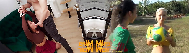 Mandy Muse - College Schoolgirl Brunette Gets Punished By Three Fuckers