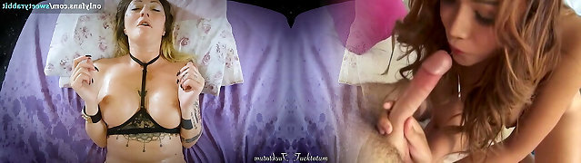 Nice bound up and oiled Asian girl squirts like a slut