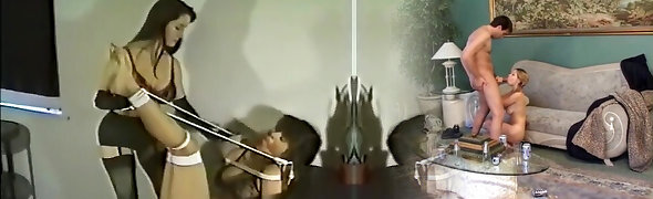 Sexy babe in hot lingerie is tied up for hard fuckfest