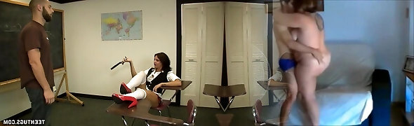 Girl is Plumbed by her educator to pass the class with her representative in front