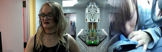 Ugly lesbian skinny girl got caught from behind while working