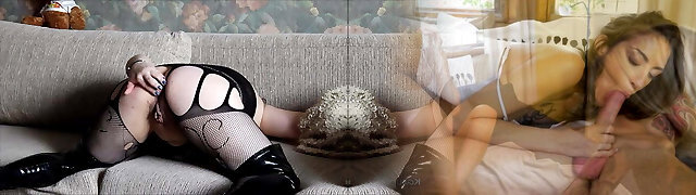 Kinky ugly long haired brunette in fishnet stockings teases man with footjob