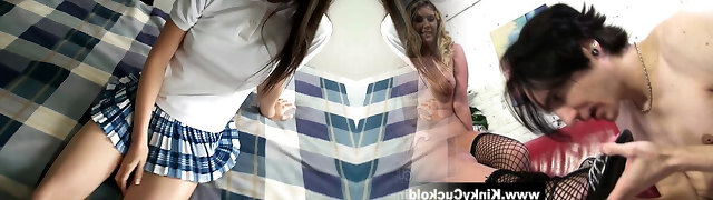Schoolgirl in uniform pounds with her stepfather and jizzes inside her.