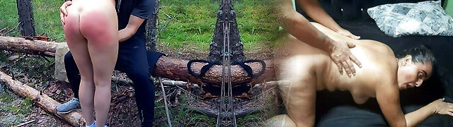 Wife spanking in the woods