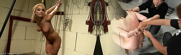 Timid blonde babe Kinsley Anne tied up and abused in a basement