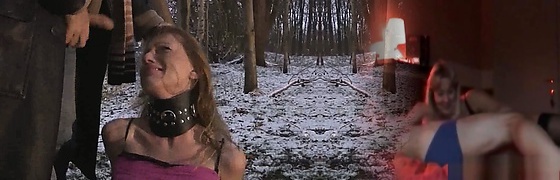 Sever authoritative male torments his slave outside in the cold