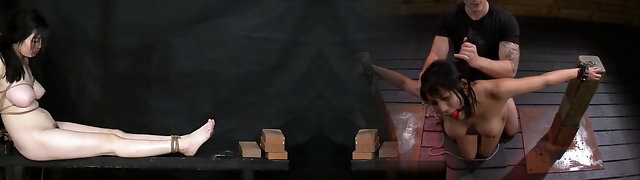 Bella Rossi has her gams stretched with cords and mouth stuffed with dick
