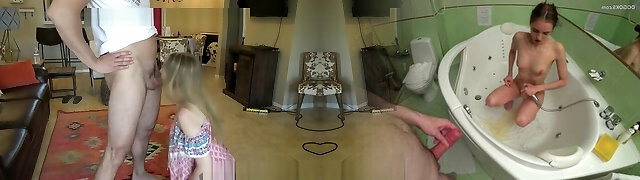 Skinny gal stepdaugther brutal punish fuck from bench