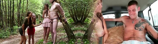 Insatiable girls found a tied up guy in the woods and licked every inch of his bone