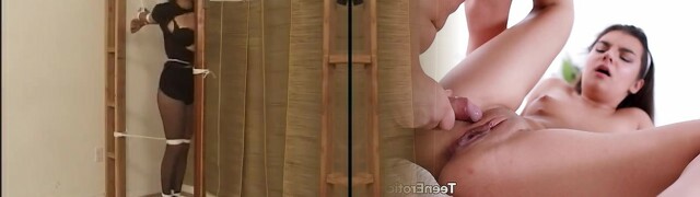 asian restrain bondage plug gagged vibed in catsuit