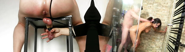 Divine BDSM dominatrix gives pegging and Cock And Ball Torture lesson to her sub