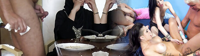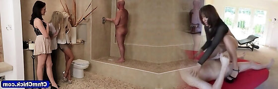 Old Dude Jerks Off In Front Of 2 Lusty Fancy Brunette MILFs To Fulfill Their Pervy CFNM Fantasies