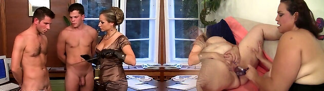 2 young Mistress Humiliate 4 grown up Slaves (Femdom)
