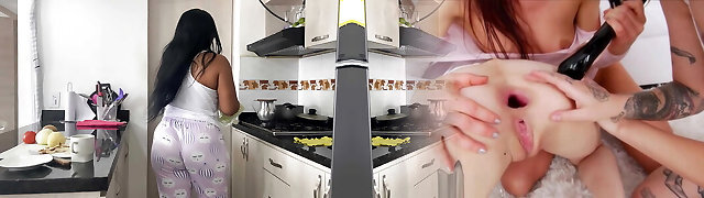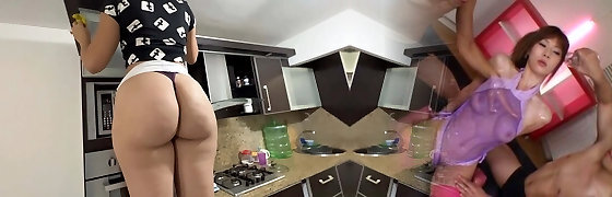 Splendid Cougar with a Huge Ass Cleaning the Kitchen and Take the Advantage of Helping Her