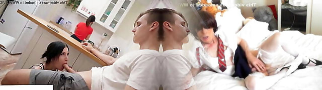 Schoolgirl in uniform pounds with her stepfather and jizzes inside her.