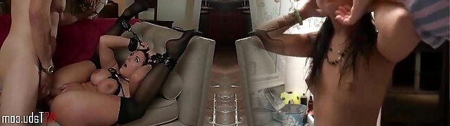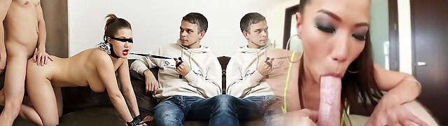 Busty girlfriend degrades bf with nasty BBC club ganging