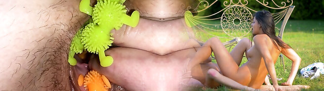 DoggyStyle With Perfect Ass Tied to bed, Gaped Pussy Stuffed with Stretchy Alien Toys