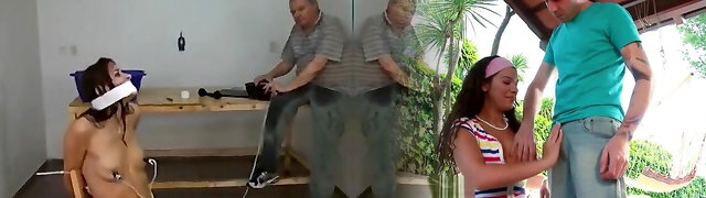 Two buxomy and vivid blondes have hard BDSM group sex with two lustful and super-naughty middle senior guys