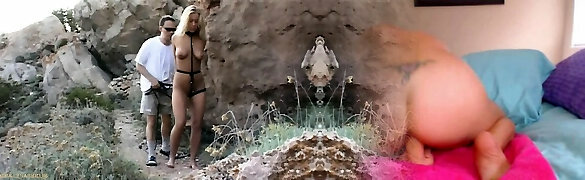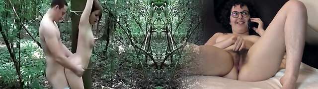 Fisting his Gf tied to a public forest tree