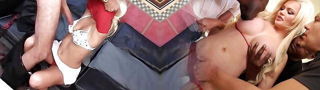 Lovely and sassy platinum-blonde white girls like to be roped and facefucked
