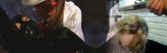 Babe in chains opens her mouth for warm men's fat hard-ons