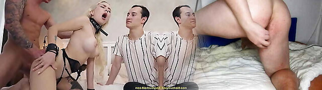 Innocent blond teenager gets tied up for an extremely rough face fucking predominance session with butt eating and degrading slobber