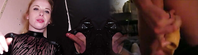 Domina tickles dick with her palms, I made him cum 2 times