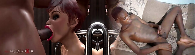 Glory hole. Two dark-hued men and dwarf fuck young slaves in the dark basement